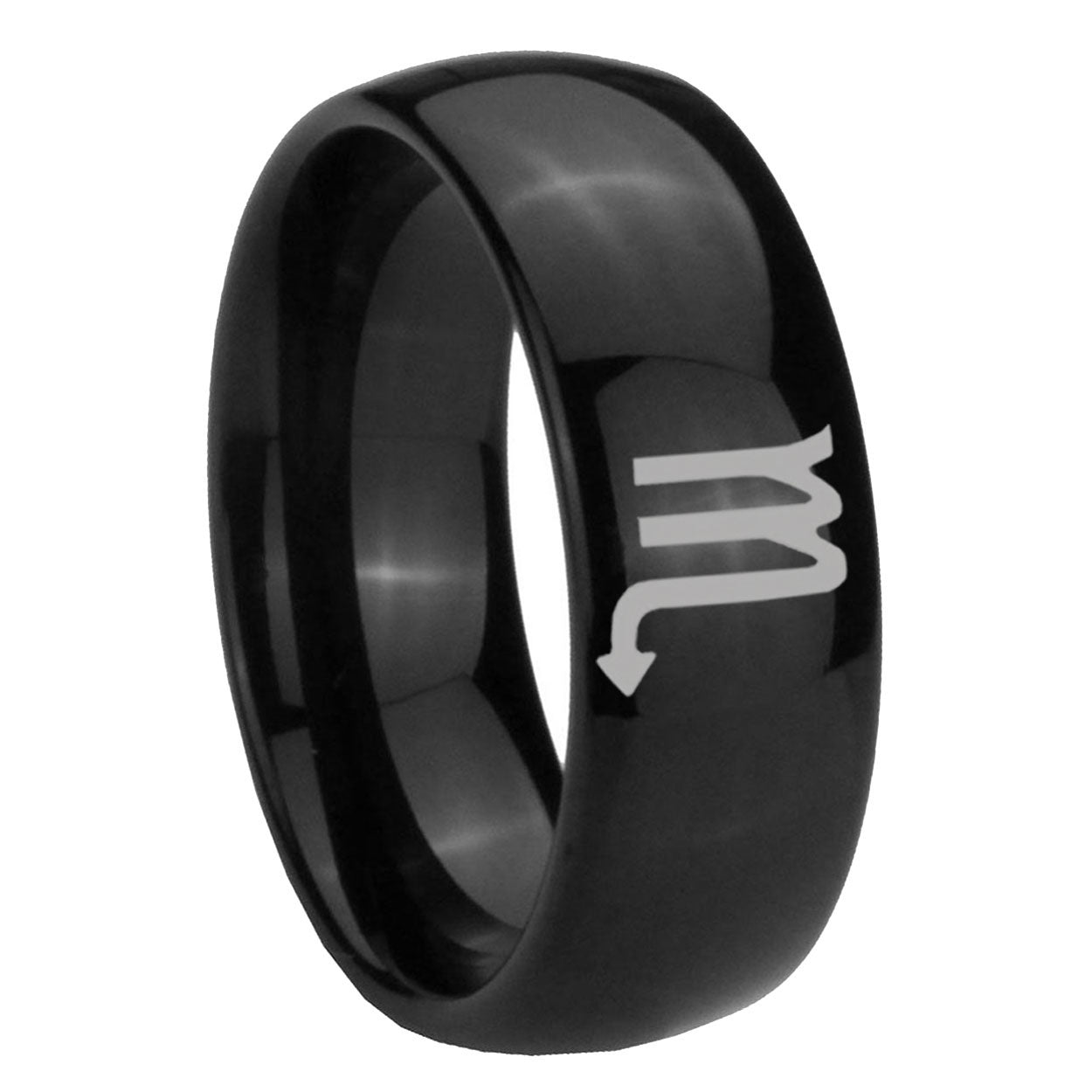 Style the 10mm Scorpio Horoscope Dome Black Tungsten Carbide Mens Bands Ring. This dome-shaped black tungsten ring with Scorpio Horoscope design is perfect for men.