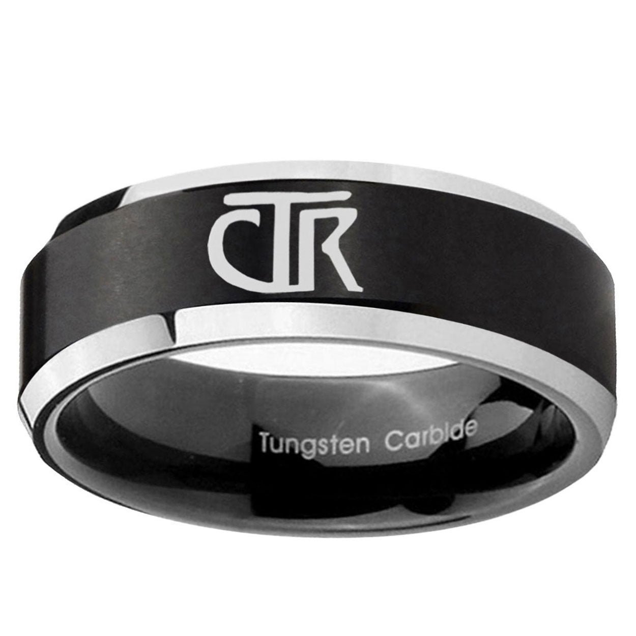 Intruding 5, 8mm CTR Beveled Edges Brush Black 2 Tone Tungsten Carbide Mens Bands Ring . Offer in both 5mm and 8mm band width brushed black plated 2 tone finished from size 4 to 14