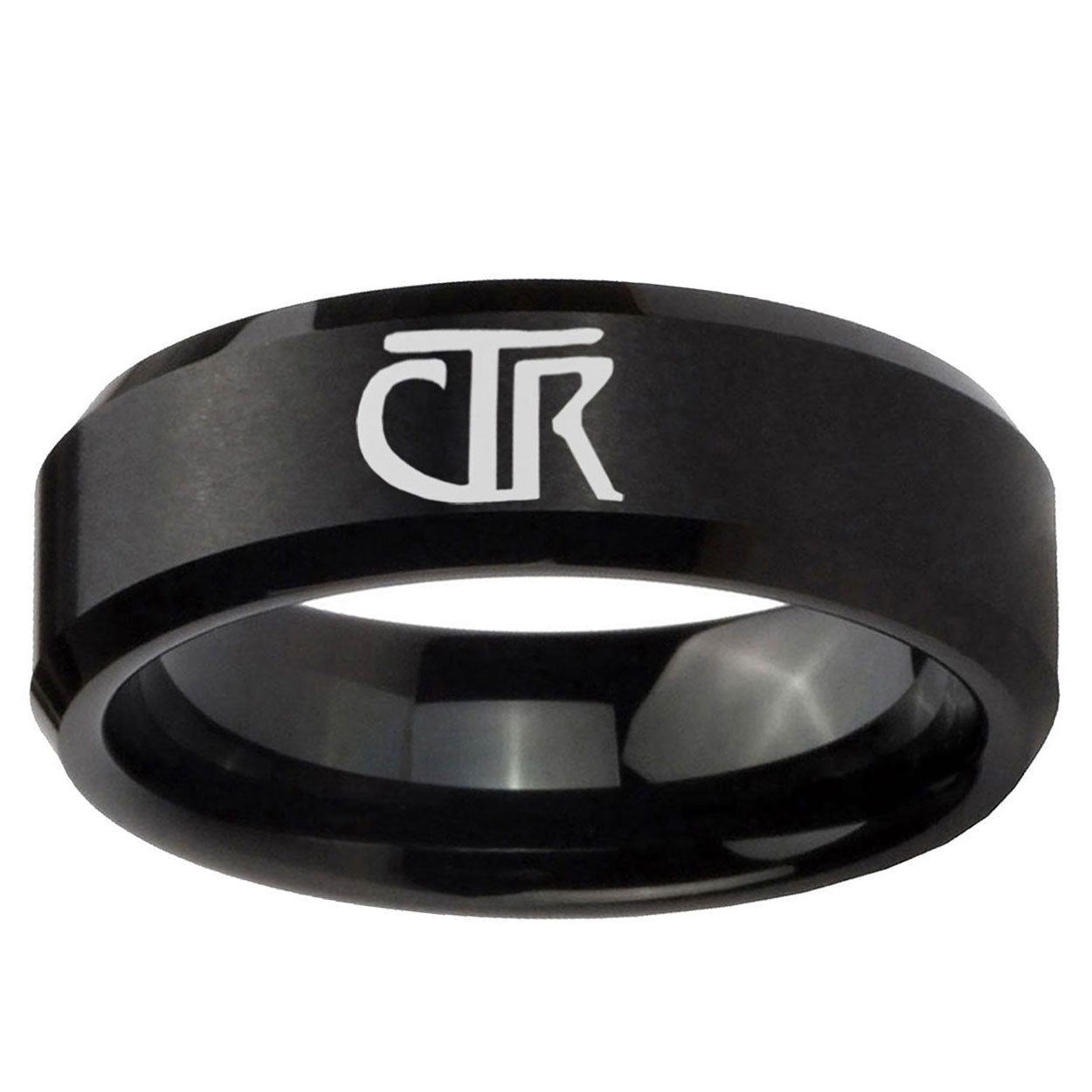 Intruding 5, 8mm CTR Beveled Edges Brush Black Tungsten Carbide Rings for Men . Offer in both 5mm and 8mm band width brushed black plated finished from size 4 to 14