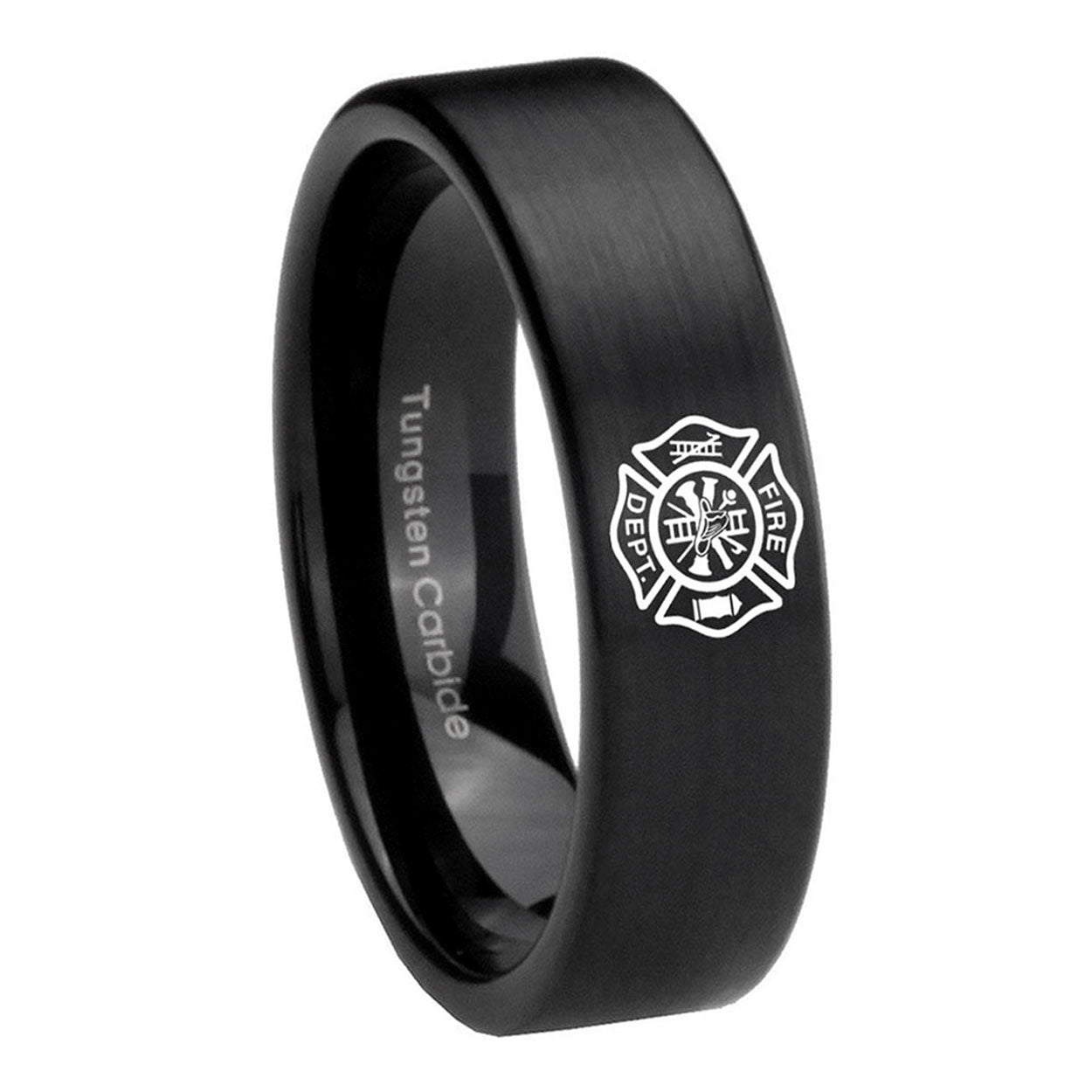 Intruding 6, 8mm Fire Department Pipe Cut Brush Black Tungsten Carbide Mens Wedding Ring . Offer in both 6mm and 8mm band width brushed black plated finished from size 5 to 14