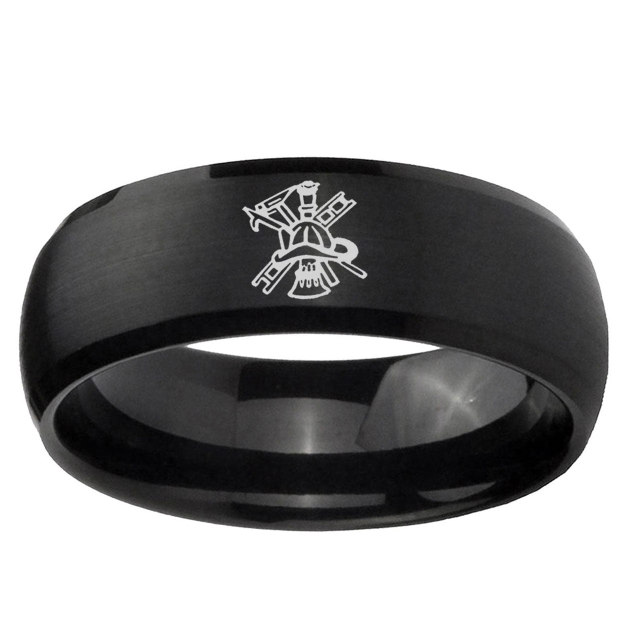 Style the 10mm Fireman Dome Brush Black Tungsten Carbide Men's Band Ring. This brushed black dome ring with Fireman design is perfect for men.