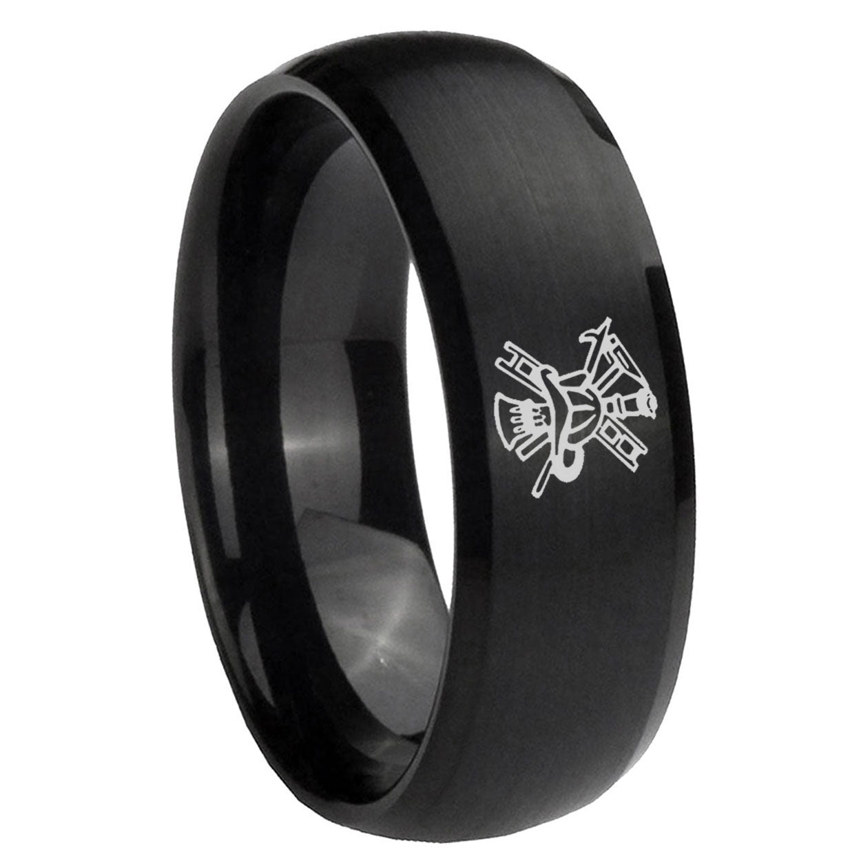 Intruding 5, 8mm Fireman Dome Brush Black Tungsten Carbide Mens Wedding Band . Offer in both 5mm and 8mm band width brush black plated finished from size 4 to 14