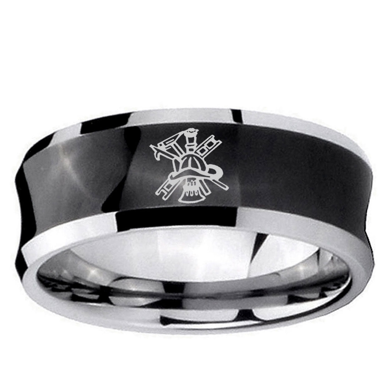 5, 8mm Fireman Concave Black Tungsten Carbide Wedding Engagement Ring