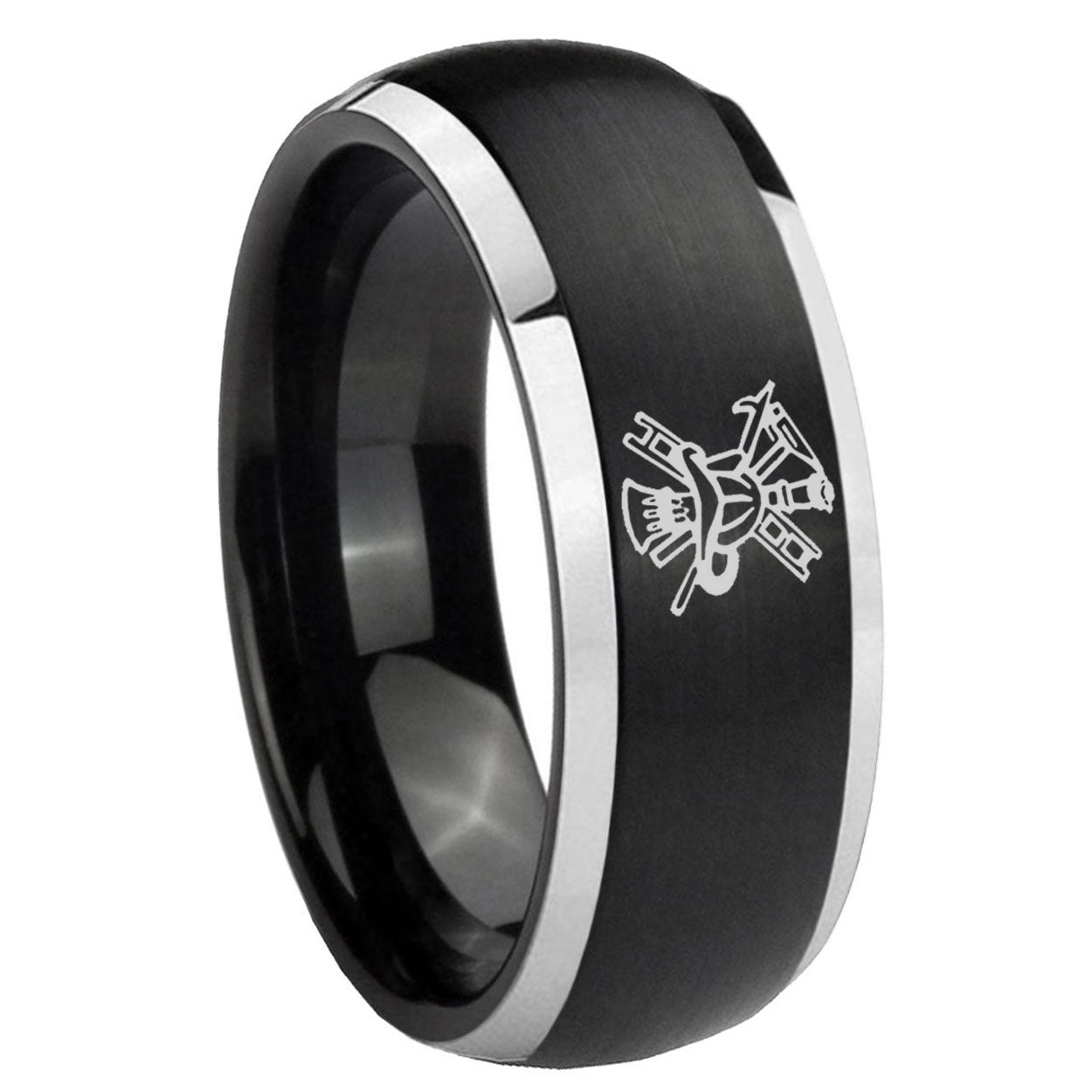 Intruding 5, 8mm Fireman Dome Brushed Black 2 Tone Tungsten Carbide Wedding Bands Ring . Offer in both 5mm and 8mm band width brushed black plated finished from size 4 to 14