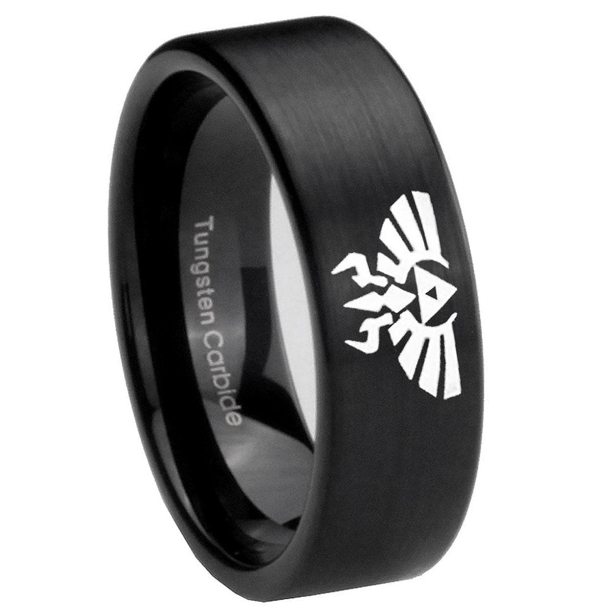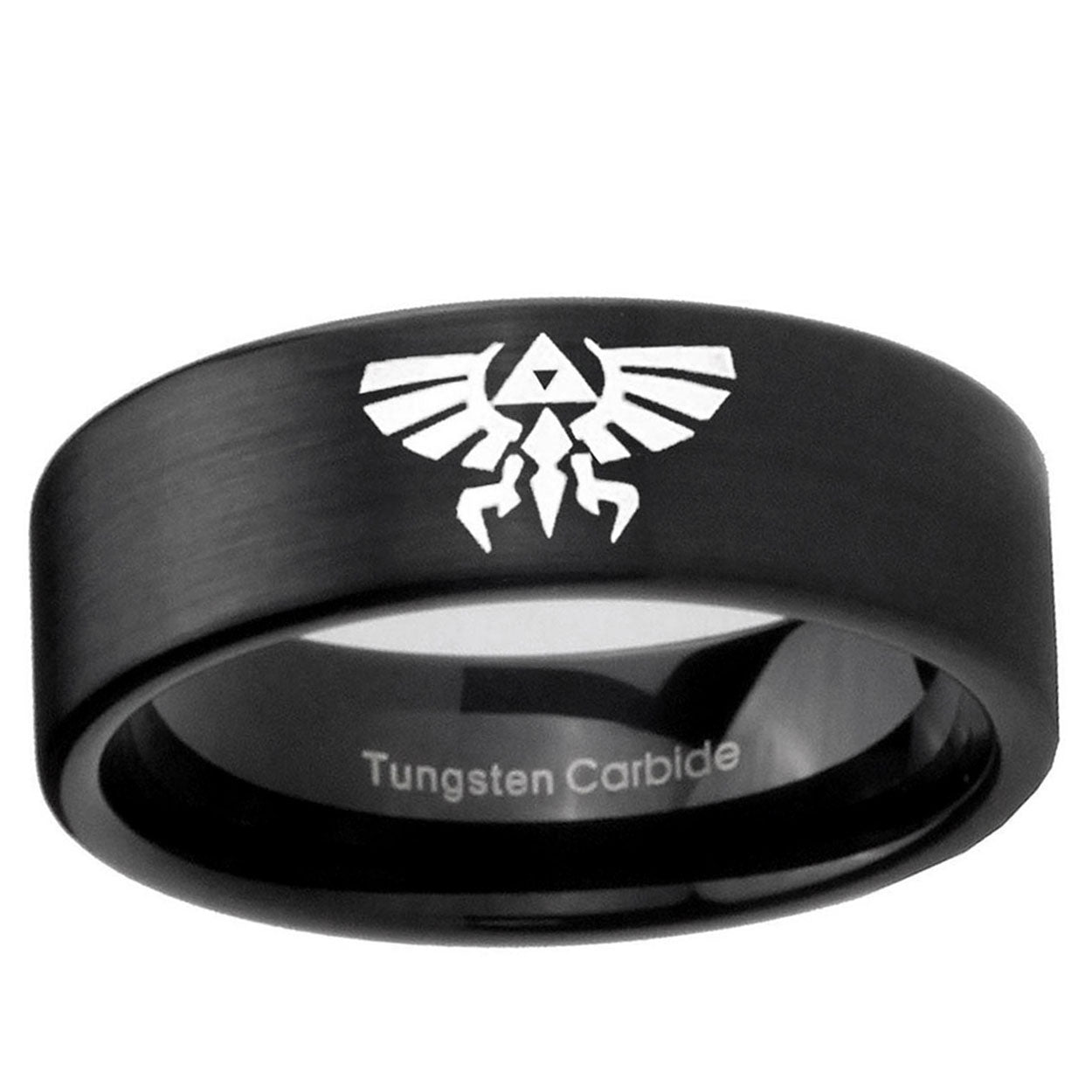 Intruding 6, 8mm Zelda Skyward Sword Pipe Cut Brush Black Tungsten Carbide Wedding Band Ring . Offer in both 6mm and 8mm band width brushed black plated finished from size 5 to 14