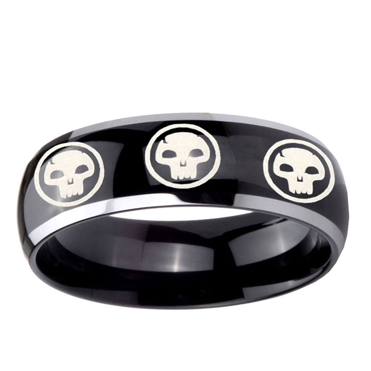 5, 8mm Multiple Skull Dome Glossy Black 2 Tone Tungsten Carbide Engagement Ring
