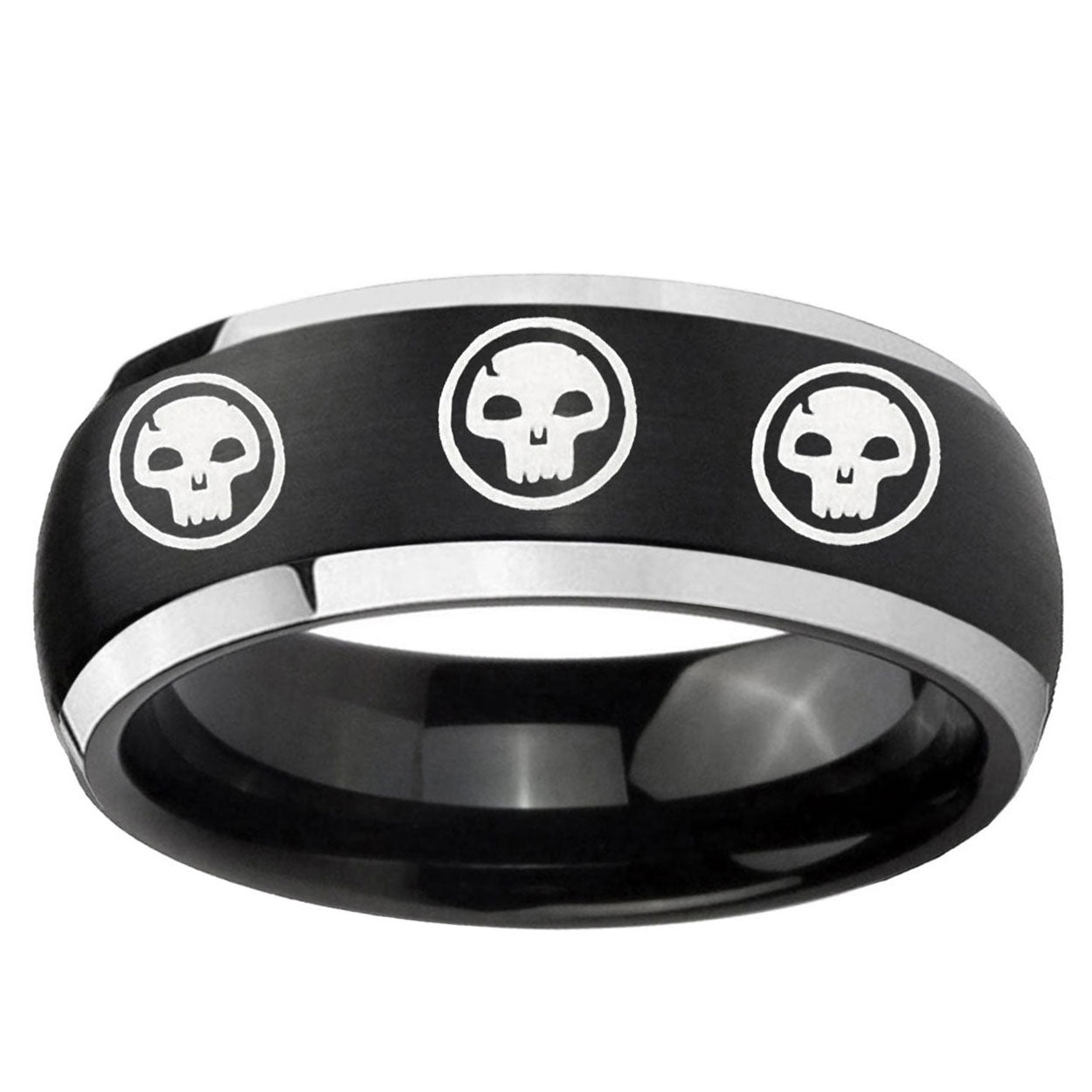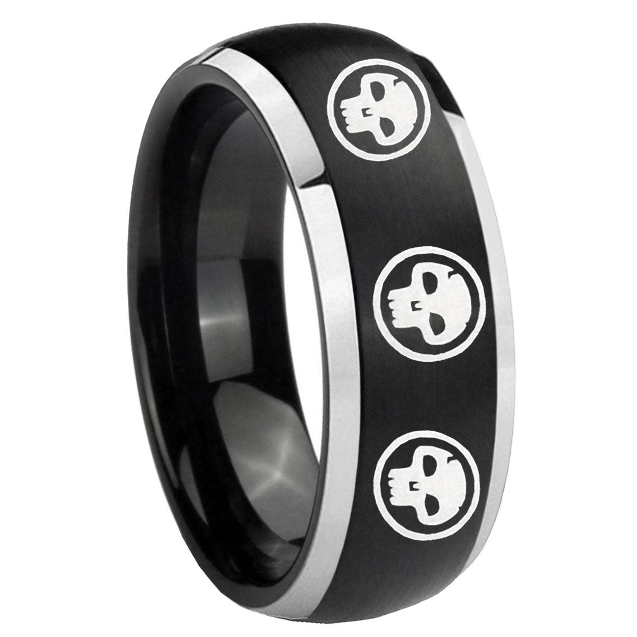 5, 8mm Multiple Skull Dome Brushed Black 2 Tone Tungsten Mens Engagement Ring