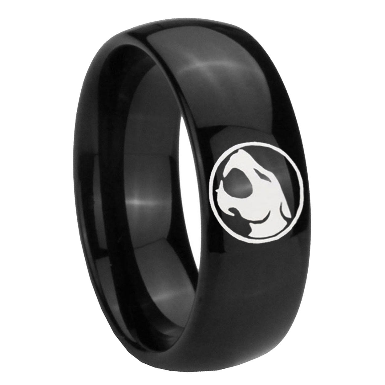 Propose with the 10mm Thundercat Dome Black Tungsten Carbide Mens Engagement Ring. This dome-shaped black tungsten ring with Thundercat design is ideal for engagements.