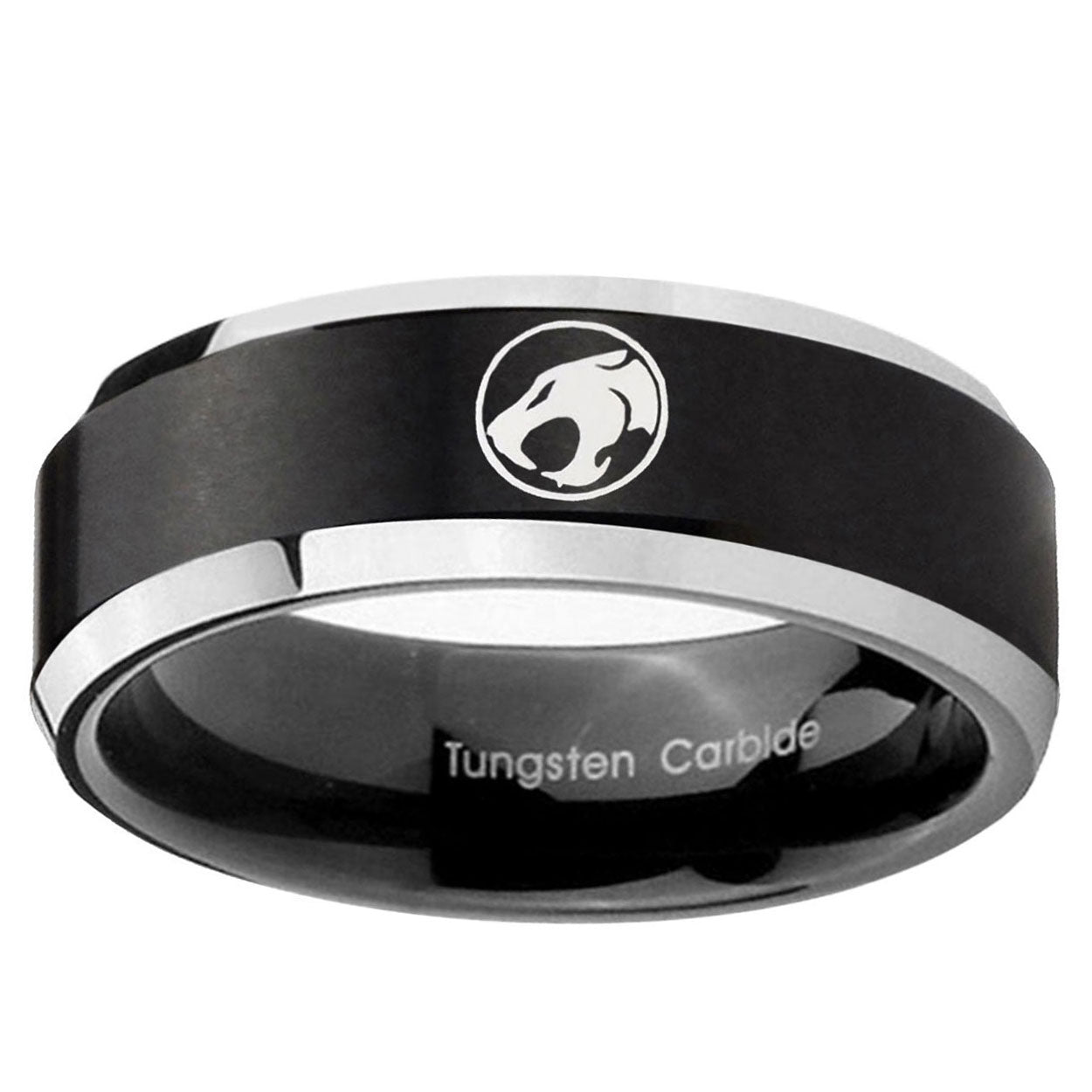 Make a promise with the 10mm Thundercat Beveled Edges Brush Black 2 Tone Tungsten Men's Promise Rings. This brushed black and 2-tone tungsten ring with Thundercat design is ideal for commitments.