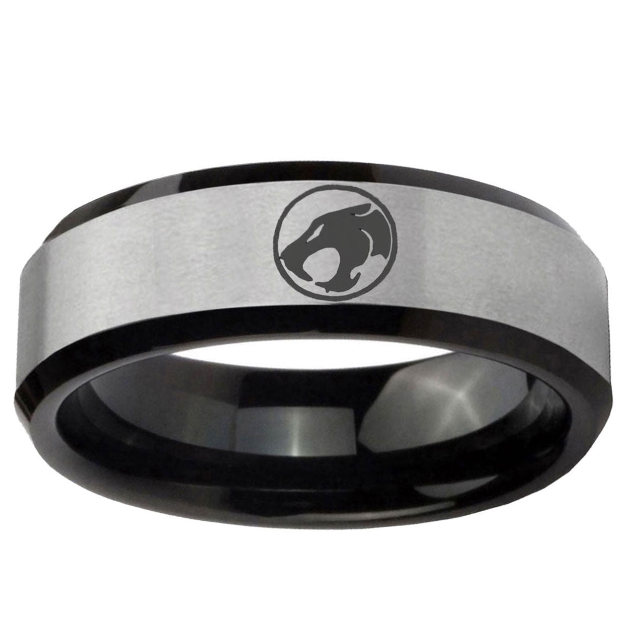 Intruding 5, 8mm Thundercat Beveled Edges Brush Black 2 Tone Tungsten Men's Engagement Band . Offer in both 5mm and 8mm band width brush black 2 tone finished from size 4 to 14