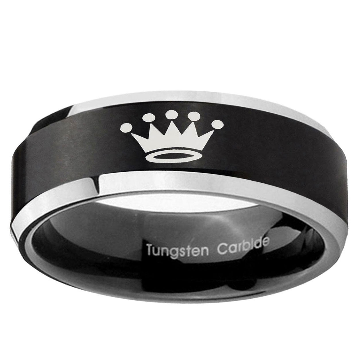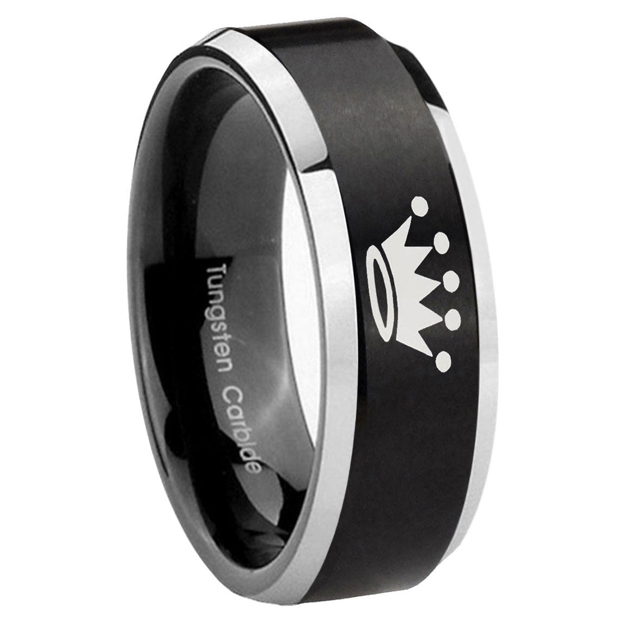 Intruding 5, 8mm Crown Beveled Edges Brush Black 2 Tone Tungsten Carbide Wedding Band Ring . Offer in both 5mm and 8mm band width brushed black plated 2 tone finished from size 4 to 14