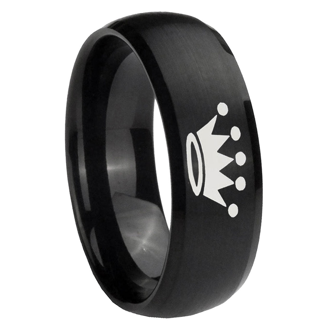 Intruding 5, 8mm Crown Dome Brush Black Tungsten Carbide Men's Engagement Band . Offer in both 5mm and 8mm band width brush black plated finished from size 4 to 14