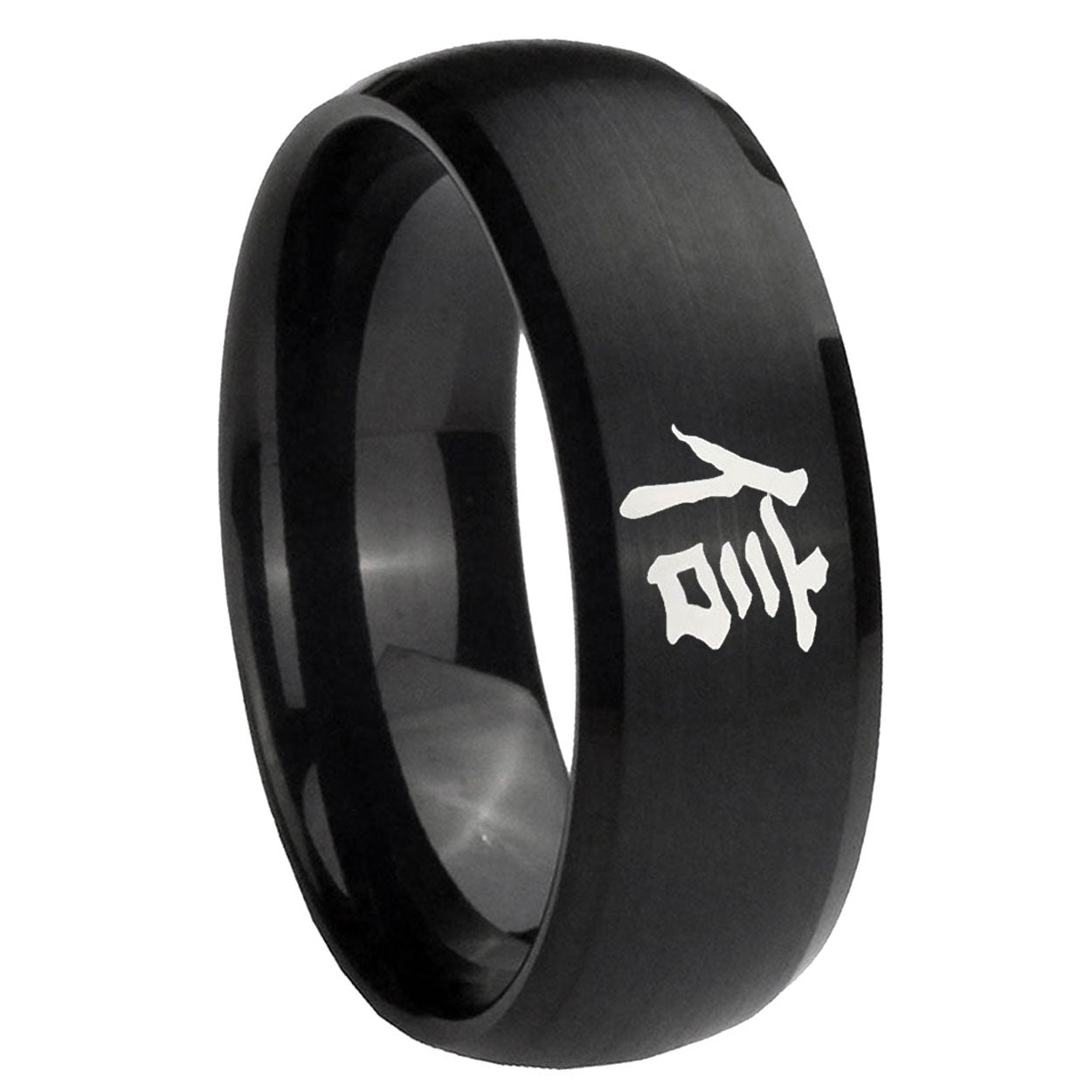 10mm Kanji Faith Dome Brush Black Tungsten Carbide Mens Ring Engraved