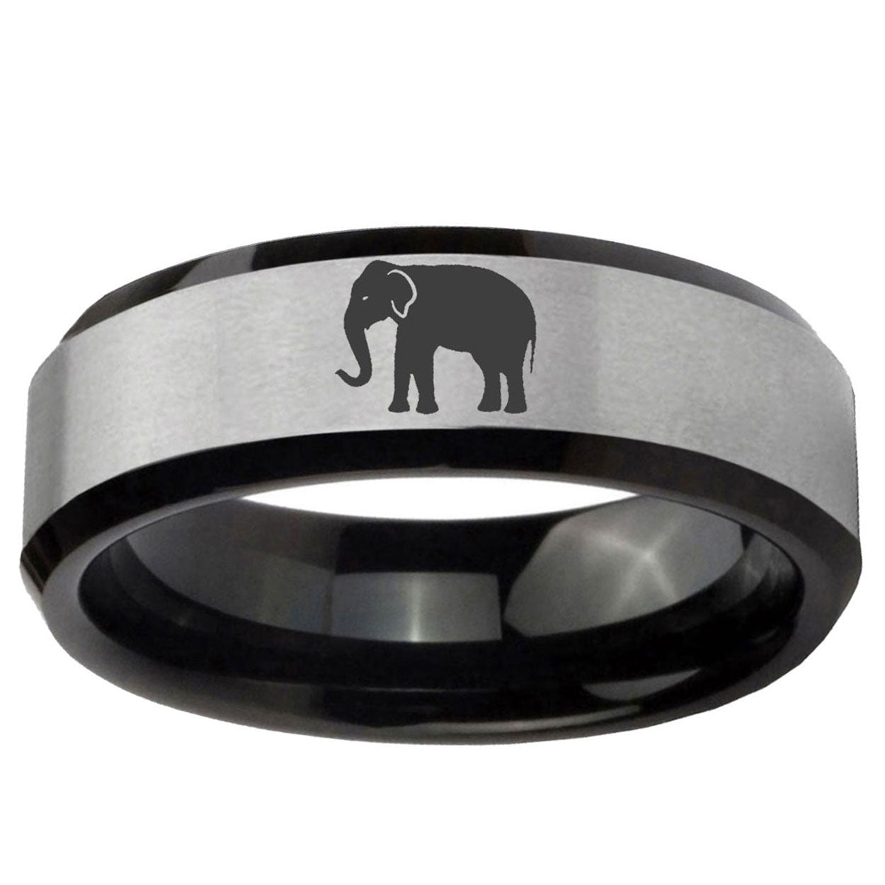 5, 8mm Elephant Beveled Brush Black 2 Tone Tungsten Men's Bands Ring