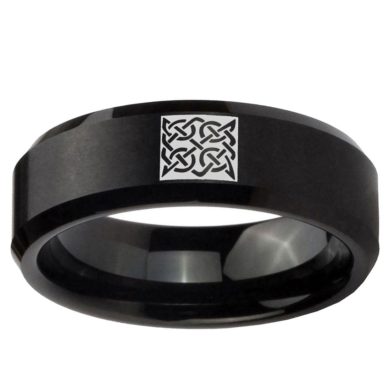 10mm Celtic Design Beveled Edges Brush Black Tungsten Carbide Personalized Ring