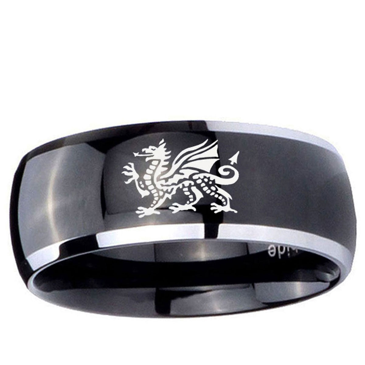 5, 8mm Dragon Dome Glossy Black 2 Tone Tungsten Carbide Personalized Ring