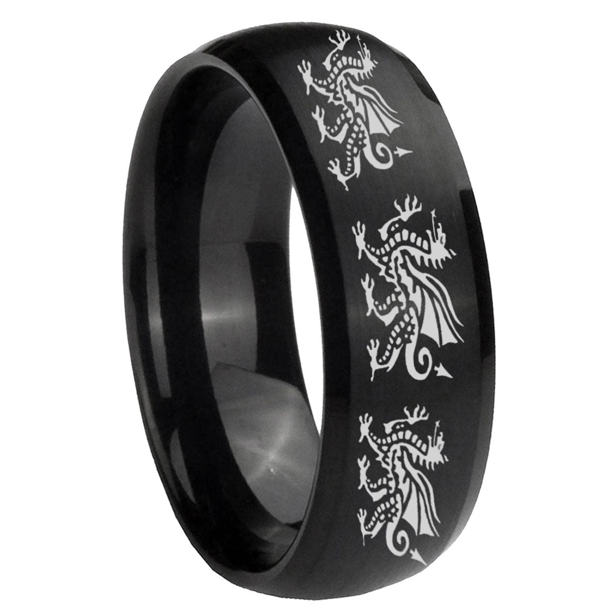 Intruding 5, 8mm Multiple Dragon Dome Brush Black Tungsten Carbide Wedding Engraving Ring . Offer in both 5mm and 8mm band width brush black plated finished from size 4 to 14