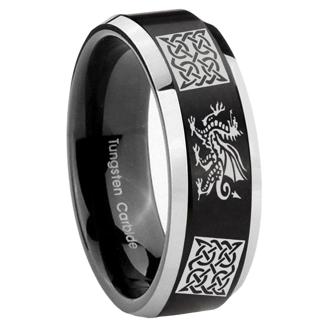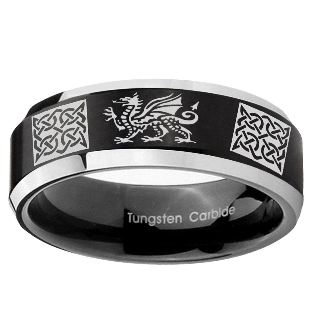 Intruding 5, 8mm Multiple Dragon Celtic Beveled Brush Black 2 Tone Tungsten Wedding Band Mens . Offer in both 5mm and 8mm band width brushed black plated 2 tone finished from size 4 to 14