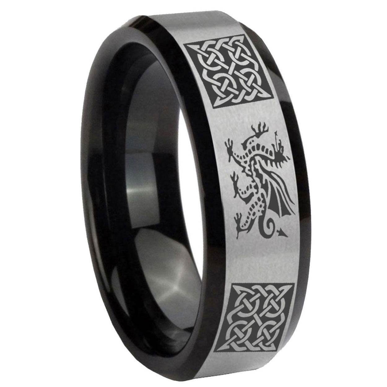 5, 8mm Multiple Dragon Celtic Beveled Brush Black 2 Tone Tungsten Mens Bands Ring