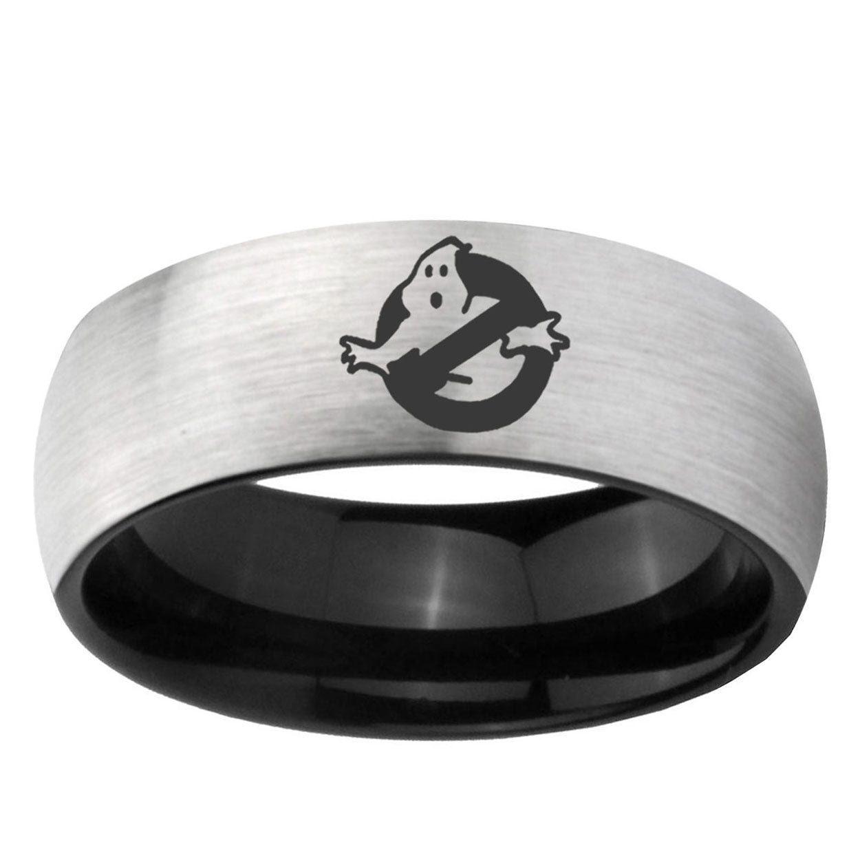 Intruding 6, 8mm Ghostbusters Dome Tungsten Carbide Gray And Black Engagement Ring . Offer in both 6mm and 8mm band width Gray And Black plated finished from size 5 to 14