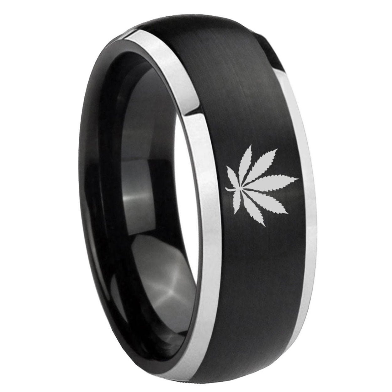 5, 8mm Marijuana Leaf Dome Brushed Black 2 Tone Tungsten Men's Wedding Ring