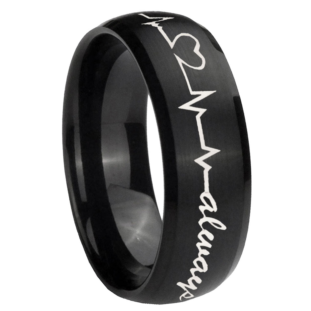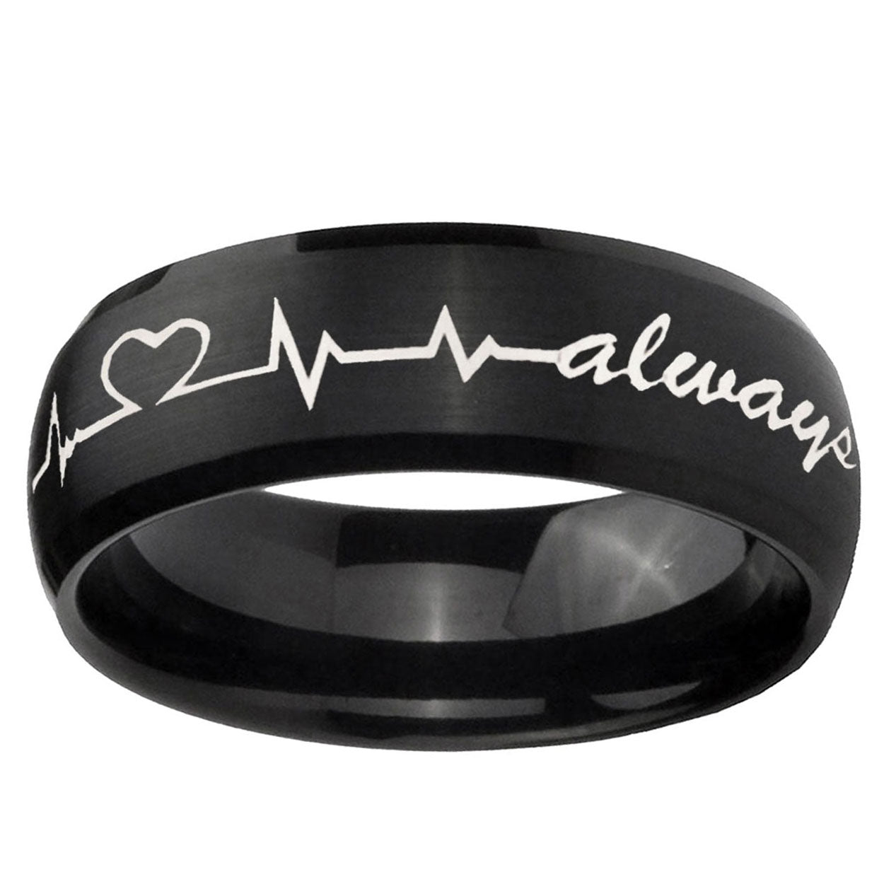 5, 8mm Heart Beat forever Heart always Dome Brush Black Tungsten Mens Promise Ring