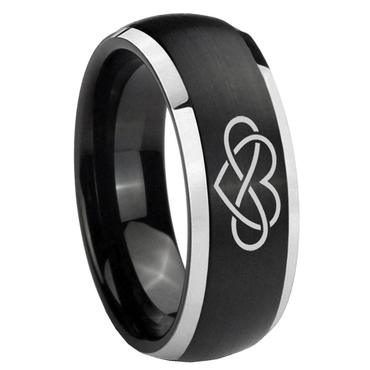5, 8mm Infinity Love Dome Brushed Black 2 Tone Tungsten Carbide Mens Promise Ring