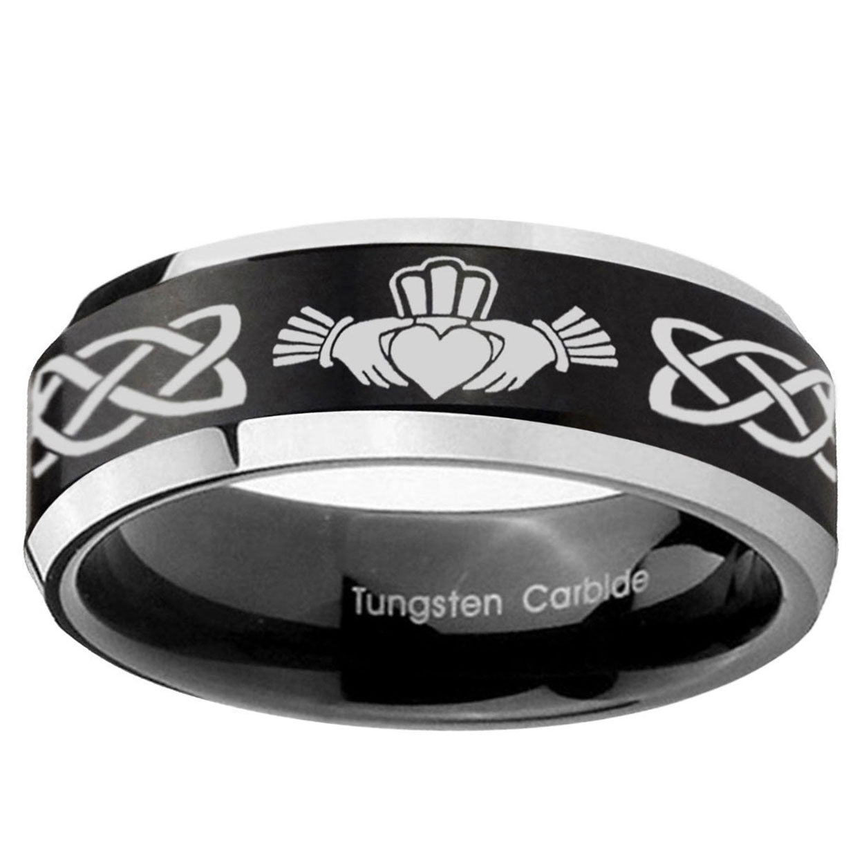 5, 8mm Irish Claddagh Beveled Edges Brush Black 2 Tone Tungsten Wedding Engraving Ring