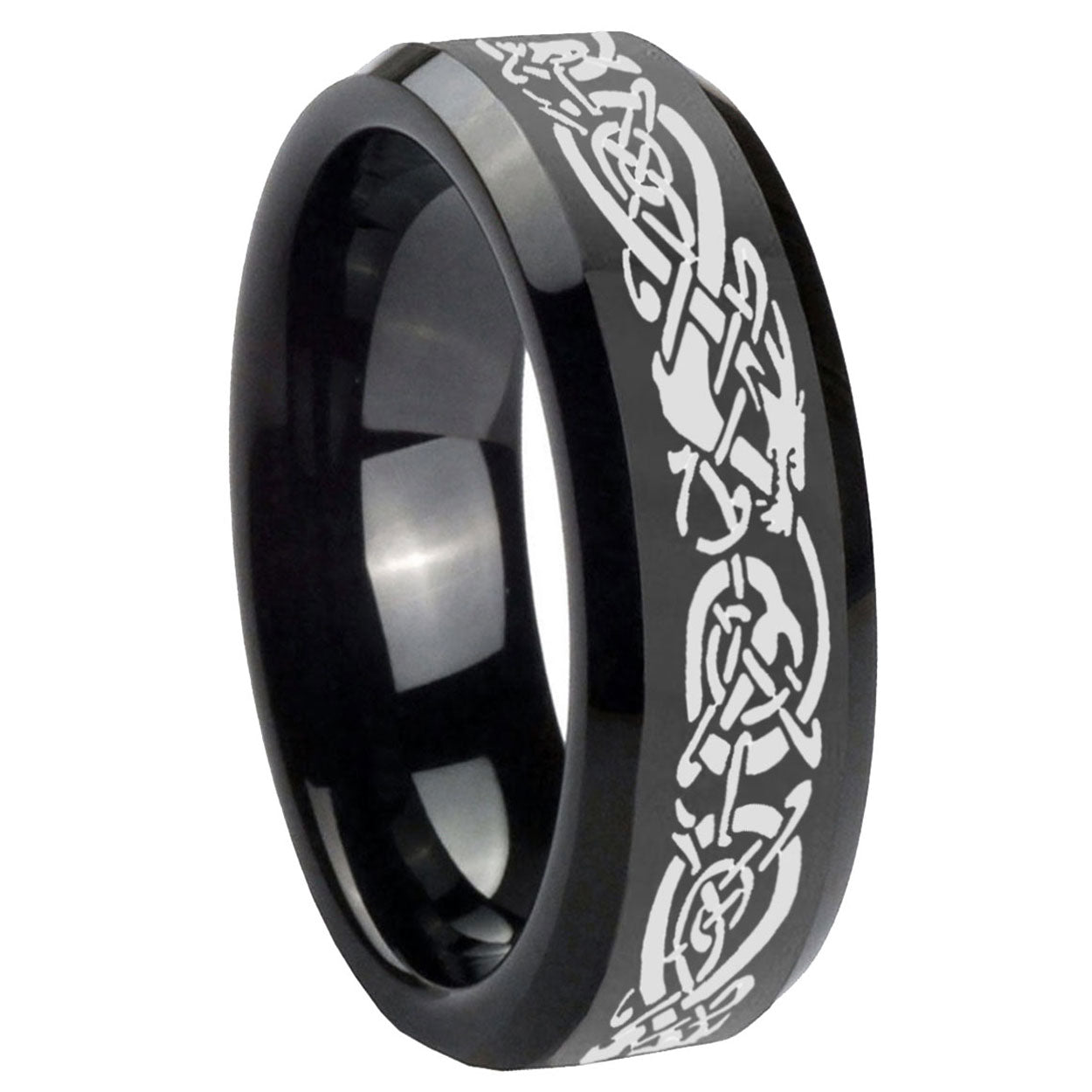 Intruding 5, 8mm Celtic Knot Dragon Beveled Edges Black Tungsten Carbide Bands Ring . Offer in both 5mm and 8mm band width polished black plated finished from size 4 to 14