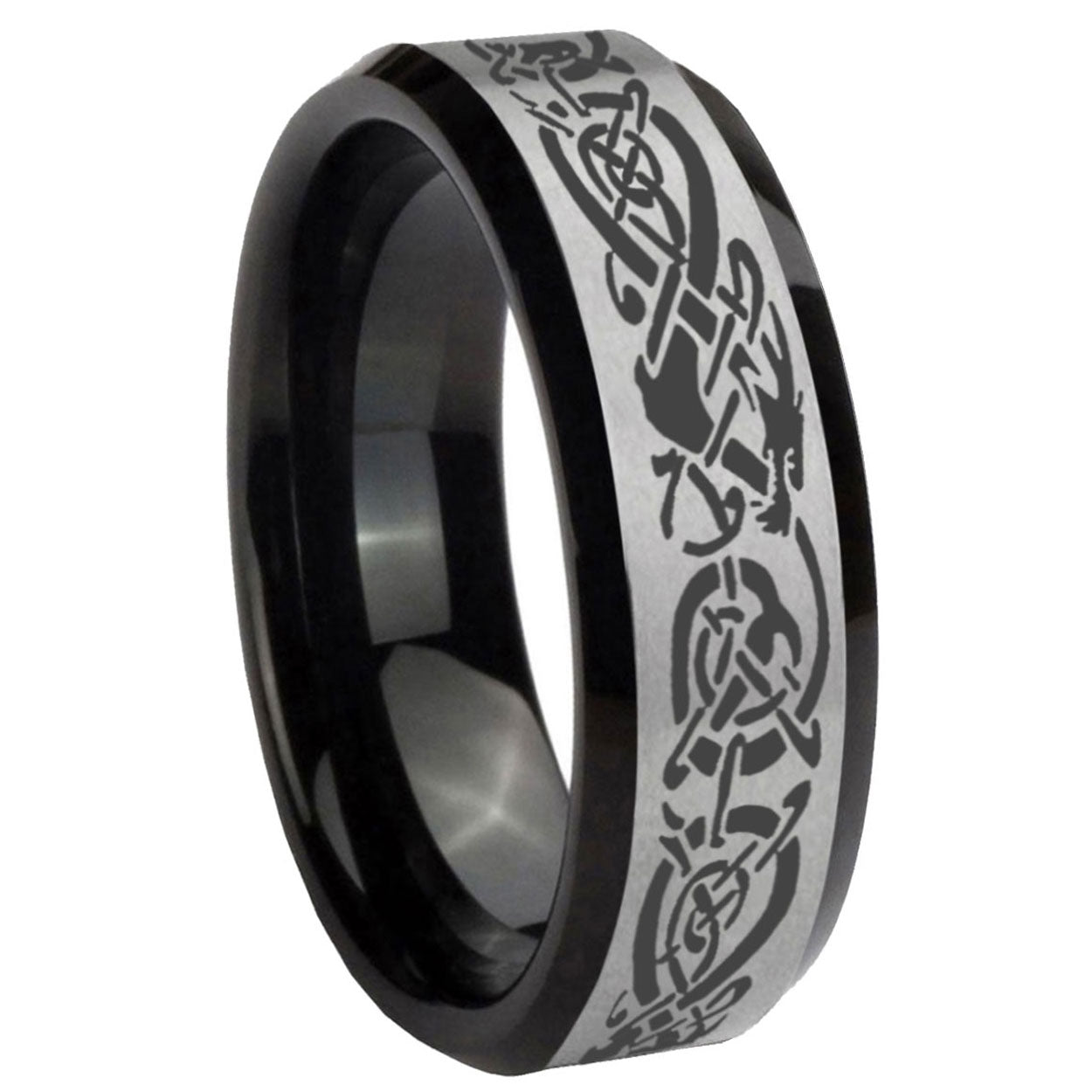 5, 8mm Celtic Knot Dragon Beveled Brush Black 2 Tone Tungsten Mens Promise Ring