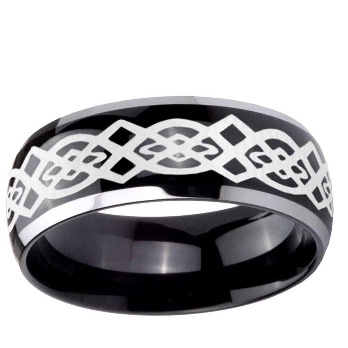 Make a promise with the 10mm Celtic Knot Dome Glossy Black 2 Tone Tungsten Carbide Men's Promise Rings. This glossy black and 2-tone dome ring with Celtic knot design is ideal for commitments.