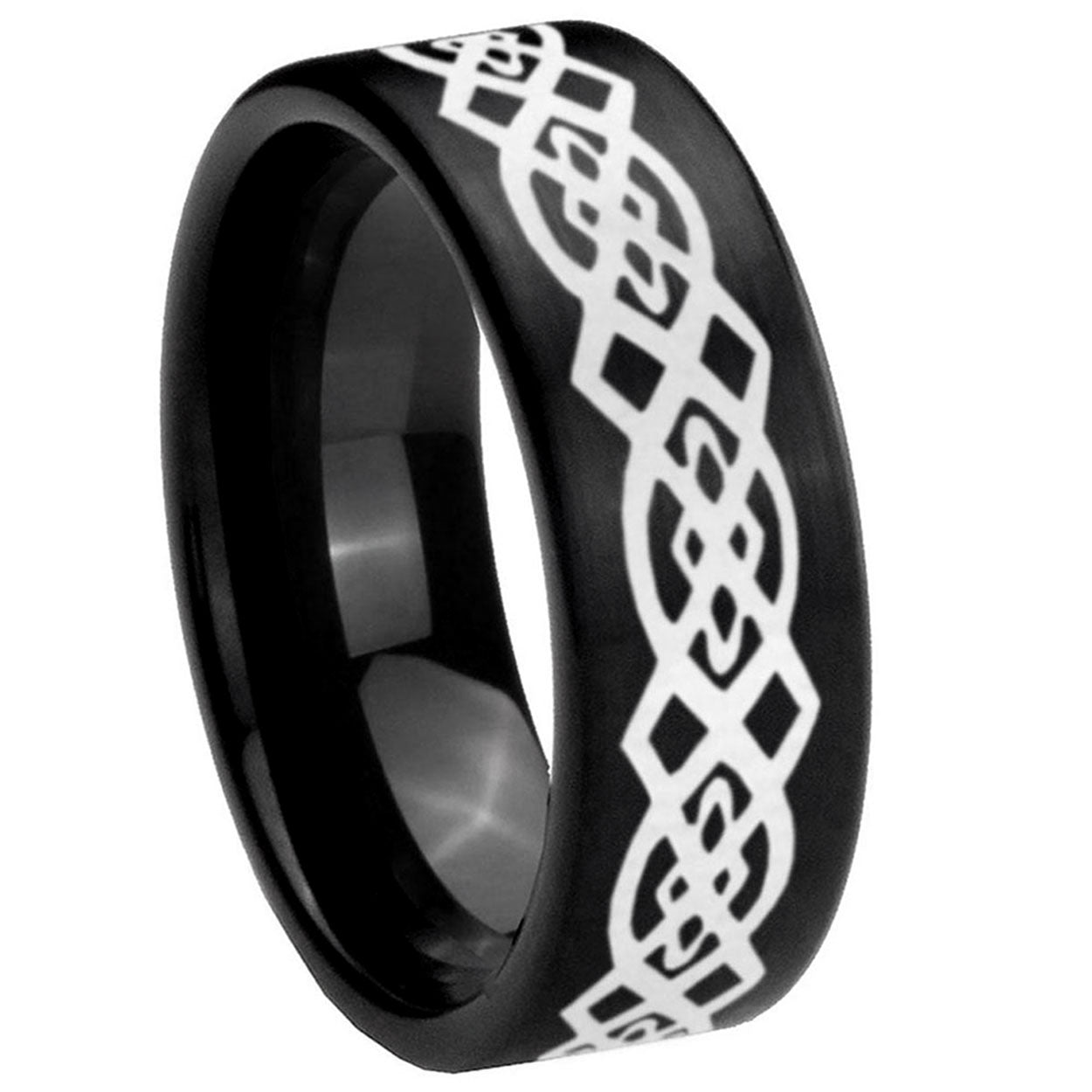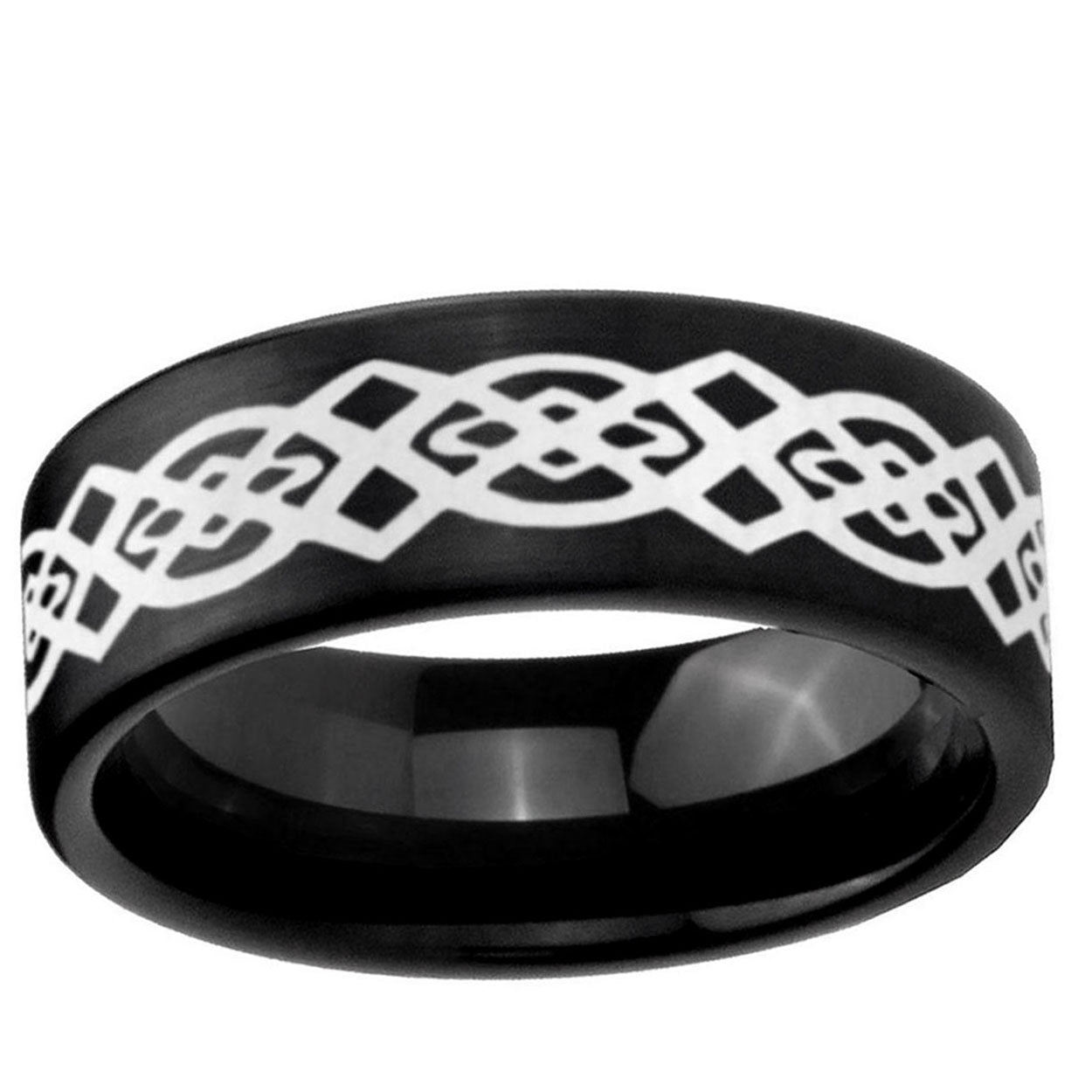Intruding 6, 8mm Celtic Knot Pipe Cut Brush Black Tungsten Carbide Anniversary Ring . Offer in both 6mm and 8mm band width brushed black plated finished from size 5 to 14