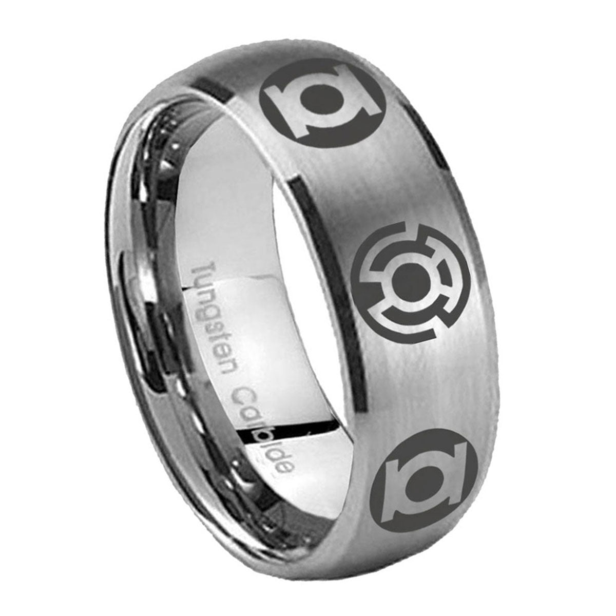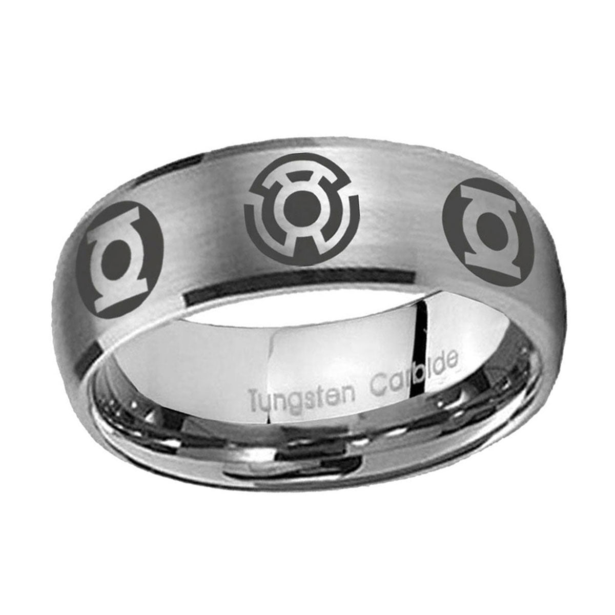 Introuding 5, 8mm Blue Green Lantern Dome Matte Silver Tungsten Ring . Offer in both 5mm and 8mm band width matte grey finished from size 4 to 14