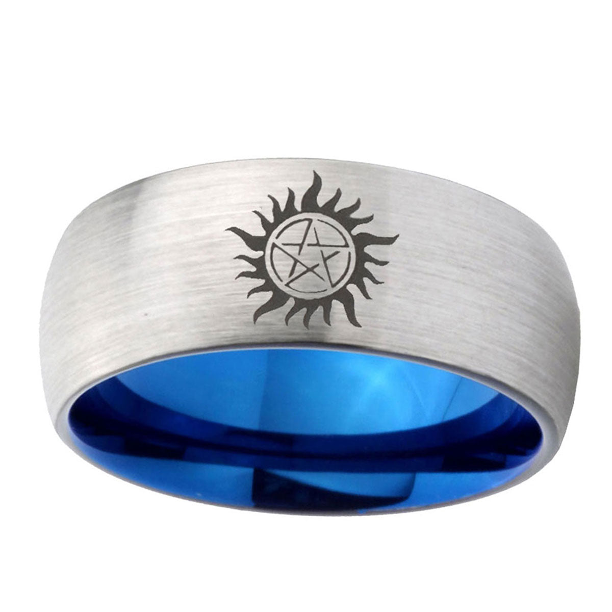 Introuding 6, 8mm Supernatural Dome Blue Silver Tungsten Price . Offer in 8mm band width silver and blue plated finished from size 7 to 14
