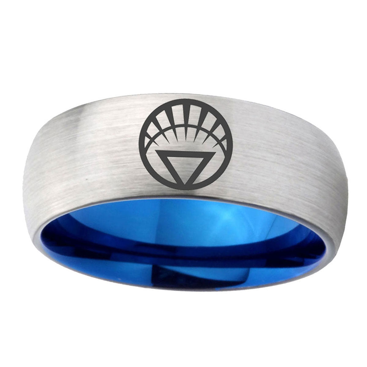 Introuding 6, 8mm White Lantern Dome Blue Silver Mens Tungsten Wedding Rings . Offer in 8mm band width silver and blue plated finished from size 7 to 14