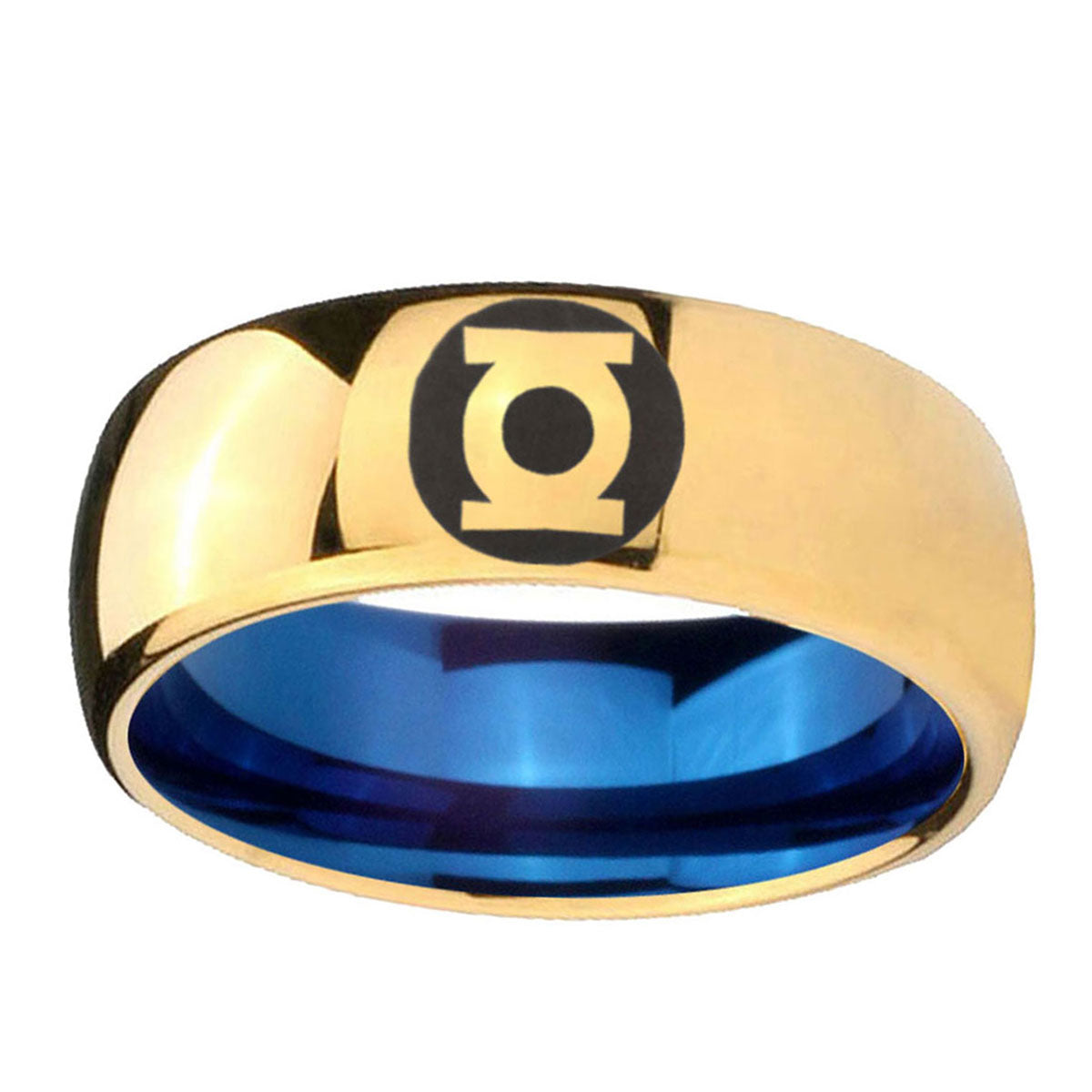 Introuding 8mm Green Lantern Dome Blue Gold Mens Ring Wedding . Offer in 8mm band width blue and gold plated finished from size 7 to 14