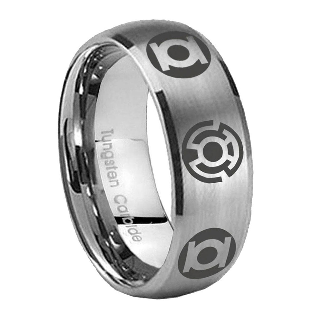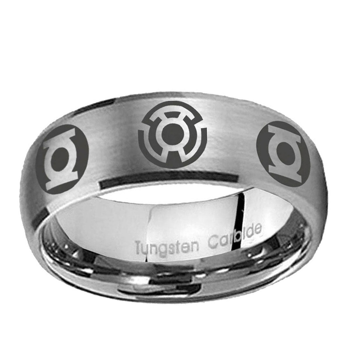 Intruding 5, 8mm Blue Green Lantern Dome Matte Silver Tungsten Ring . Offer in both 5mm and 8mm band width matte grey finished from size 4 to 14