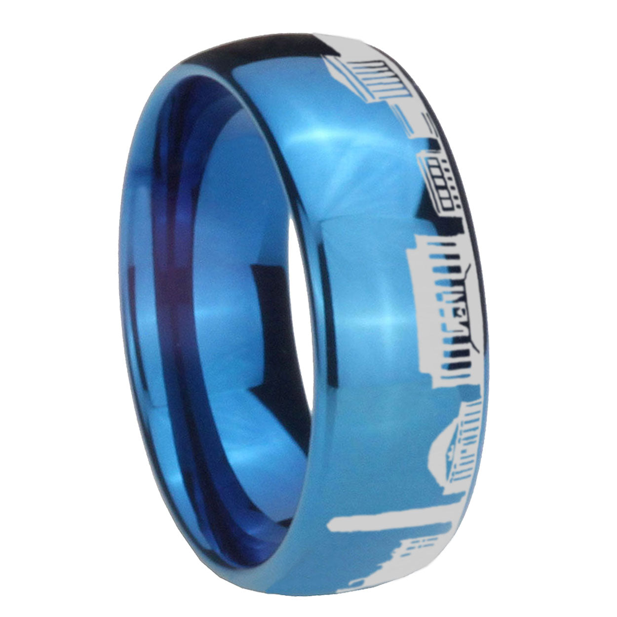8mm DC Washington City Dome Polish Blue Tungsten Mens Wedding Bands Engraved