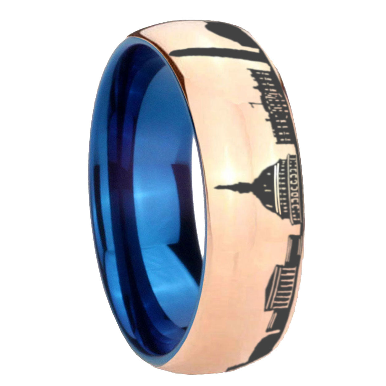 8mm DC Washington City Dome Polish Rose Gold Tungsten Blue Plated Inside Mens Ring