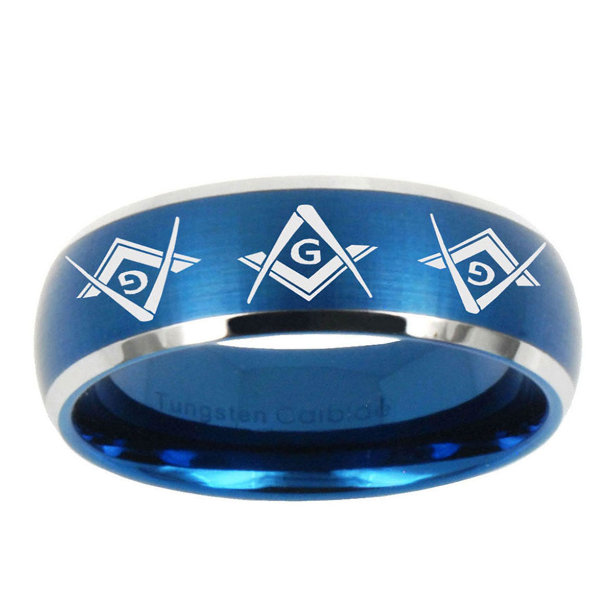 10mm Master Mason Masonic Dome Brushed Blue 2 Tone Tungsten Wedding Band Mens