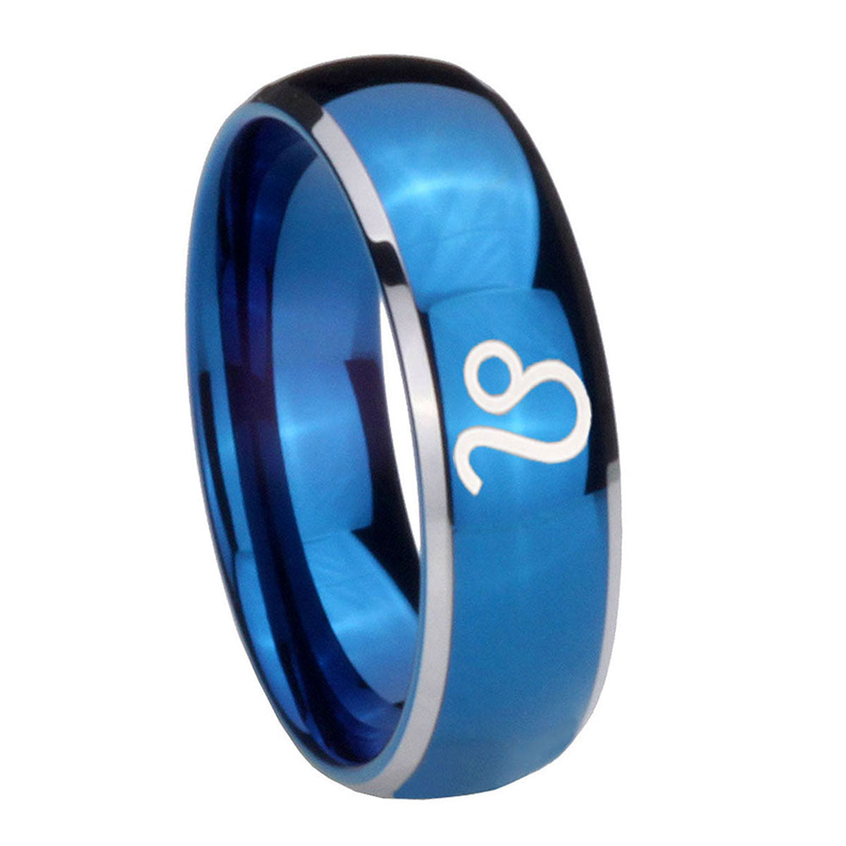 Intruding 5, 8mm Leo Zodiac Dome Blue 2 Tone Tungsten Carbide Promise Ring . Offer in both 5mm and 8mm band width polished blue plated 2 tone finished from size 4 to 14