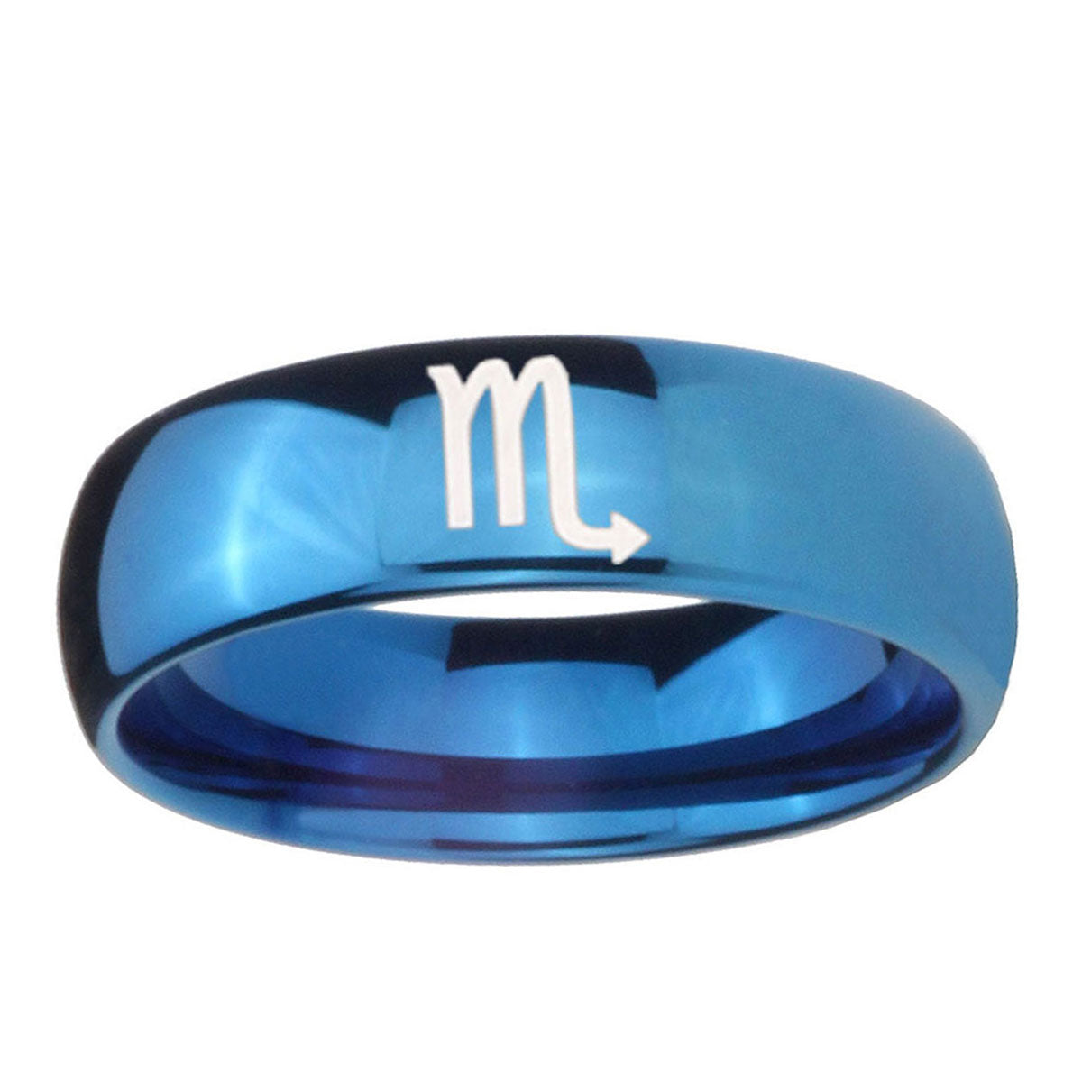 Intruding 5, 8mm Scorpio Horoscope Dome Blue Tungsten Carbide Men's Engagement Band . Offer in both 5mm and 8mm band width polished blue plated finished from size 4 to 14