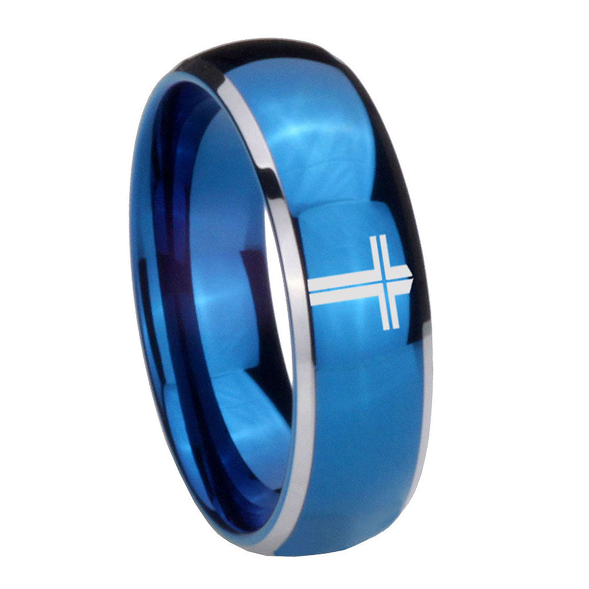 Intruding 5, 8mm Flat Christian Cross Dome Blue 2 Tone Tungsten Carbide Wedding Band Mens . Offer in both 5mm and 8mm band width polished blue plated 2 tone finished from size 4 to 14