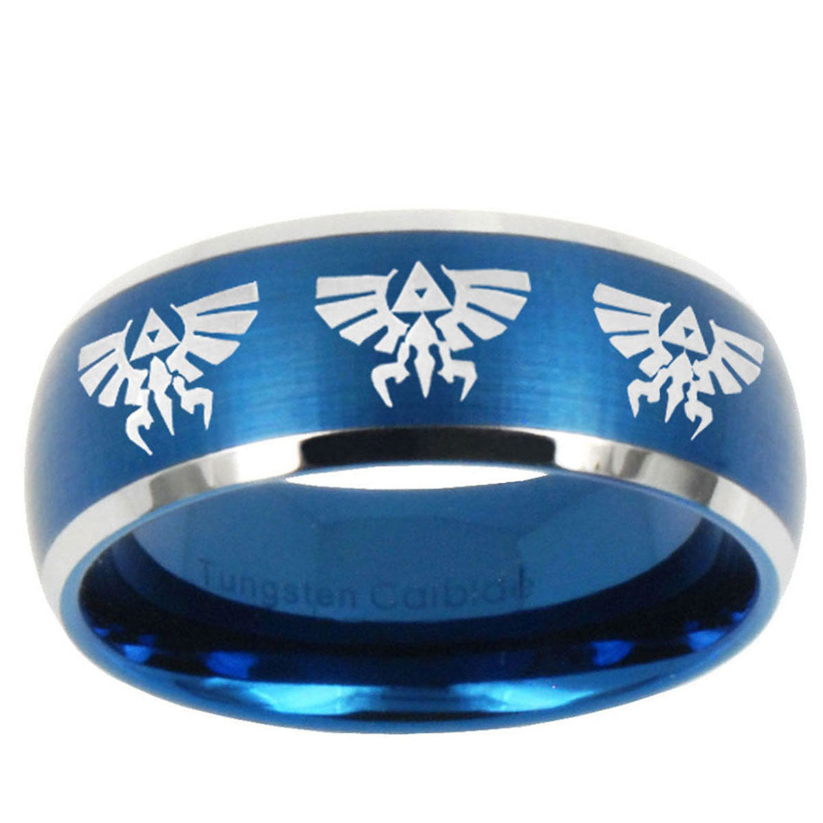 10mm Multiple Zelda Skyward Sword Dome Brushed Blue 2 Tone Tungsten Men's Ring