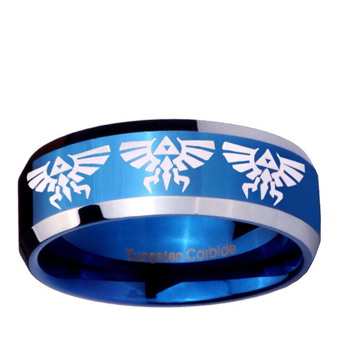 10mm Multiple Zelda Skyward Sword Beveled Blue 2 Tone Tungsten Promise Ring