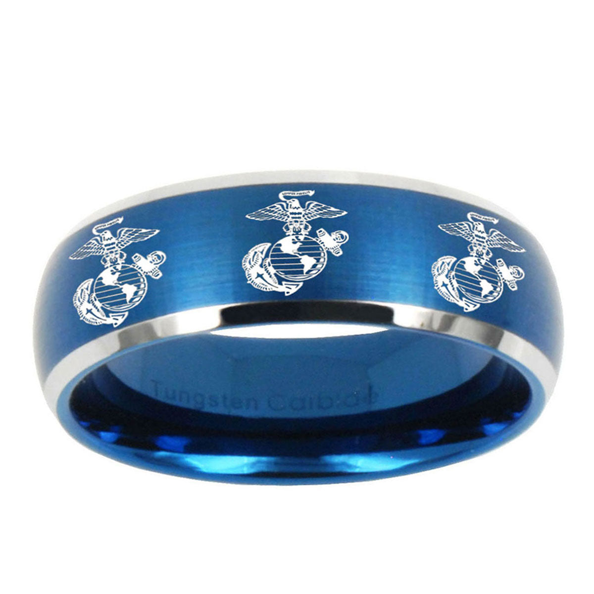 Intruding 5, 8mm Multiple Marine Dome Brushed Blue 2 Tone Tungsten Mens Engagement Ring . Offer in both 5mm and 8mm band width brushed blue 2 tone plated finished from size 4 to 14