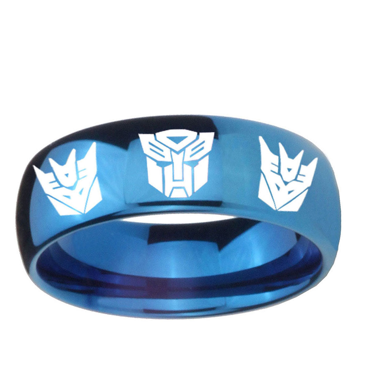 Intruding 5, 8mm Transformers Autobot Decepticon Dome Blue Tungsten Carbide Personalized Ring . Offer in both 5mm and 8mm band width polished blue plated finished from size 4 to 14