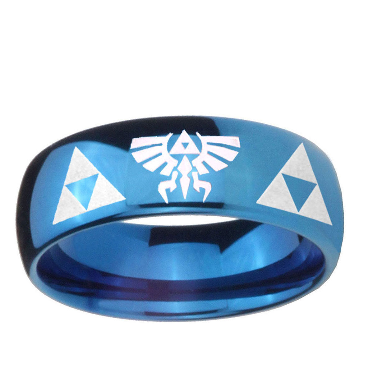 Intruding 5, 8mm Legend of Zelda Dome Blue Tungsten Carbide Mens Bands Ring . Offer in both 5mm and 8mm band width polished blue plated finished from size 4 to 14