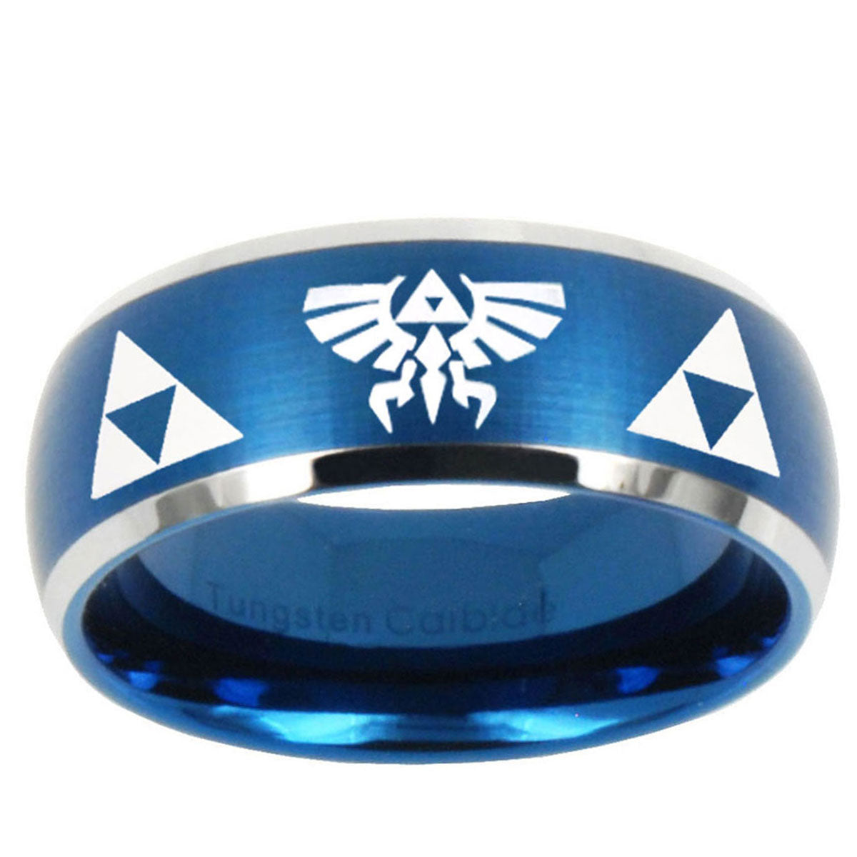 Intruding 5, 8mm Legend of Zelda Dome Brushed Blue 2 Tone Tungsten Carbide Wedding Band Mens . Offer in both 5mm and 8mm band width brushed blue 2 tone plated finished from size 4 to 14