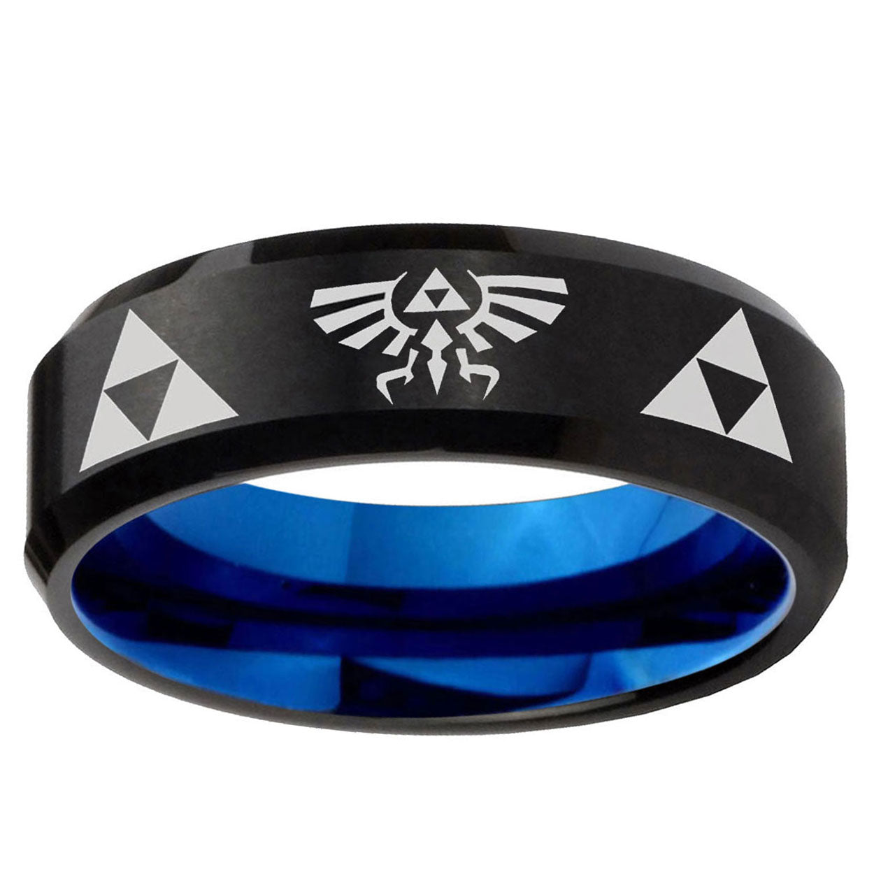 10mm Legend of Zelda Bevel Tungsten Carbide Blue Wedding Ring